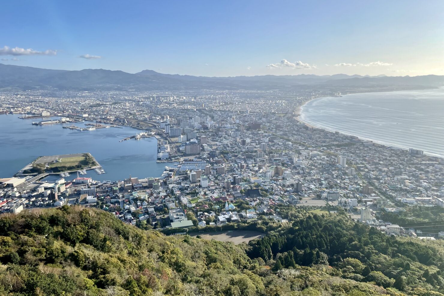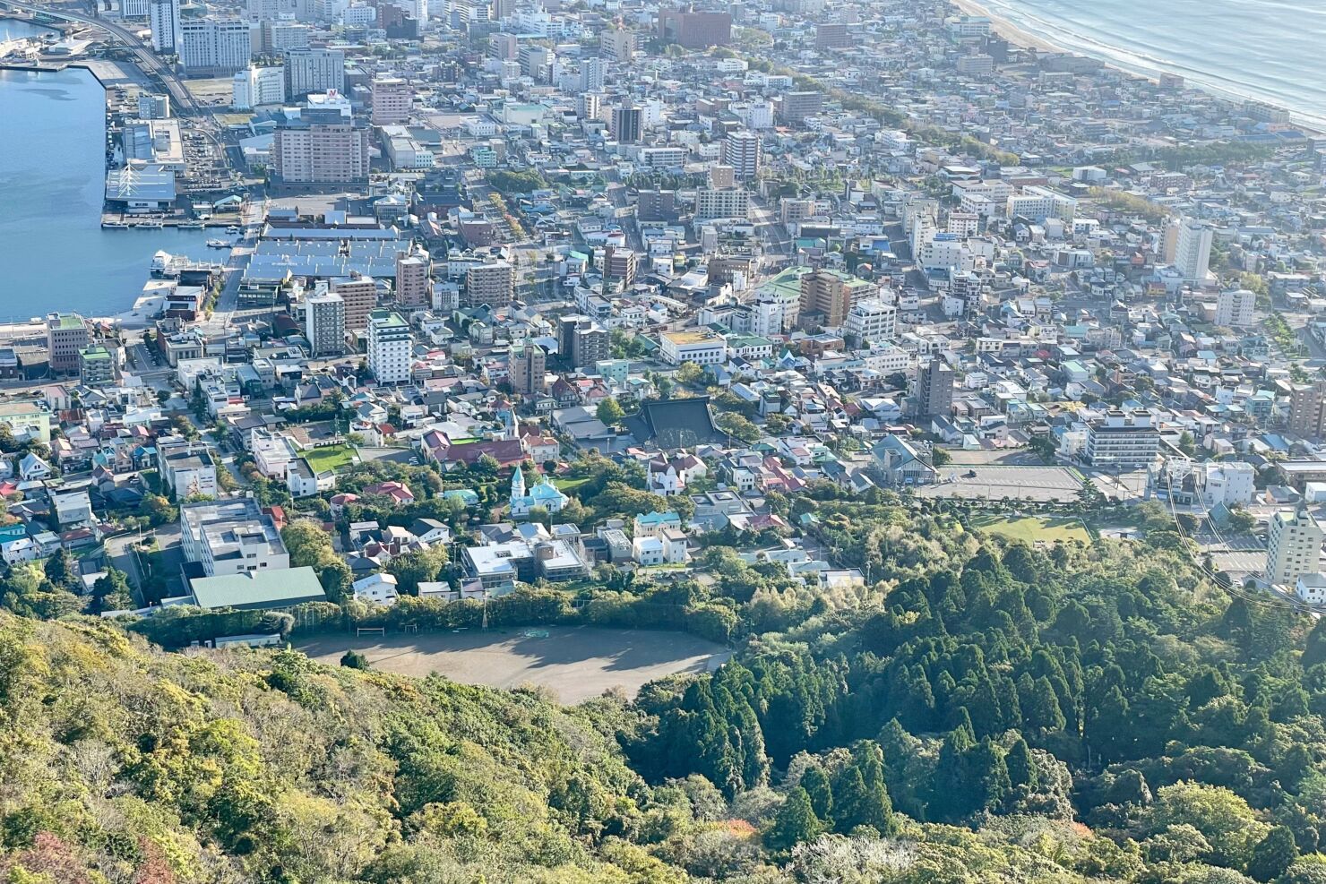 展望台から市街地を見ると、この後巡る予定の教会群や谷地頭方面を見ることもできます。ここらへんか~と覚えておきながら周ると街歩きがより楽しくなります。