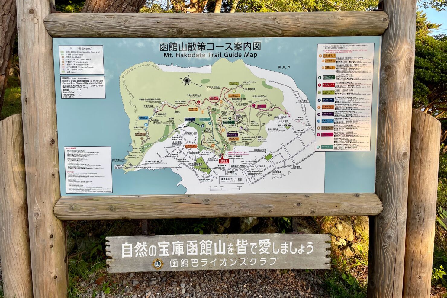 函館山は常時解放された山なので、日の出後明るくなってきたら問題なく登山ができます。いくつも登山ルートがありますが、今回は比較的登りやすい旧登山道コースのつつじ山コースを登ります。まず函館山登山道入り口にある、ふれあいセンターを目指して向かいます。