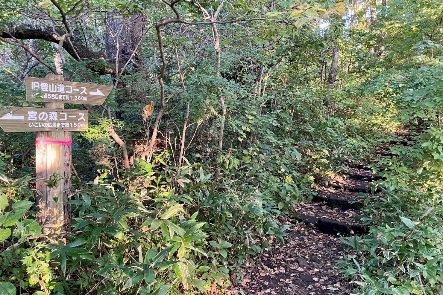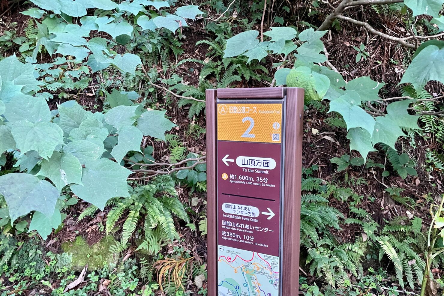 登山道の途中ではこういった標識があるので方向や後どれくらい時間がかかりそうか確認しながら登ることができます。