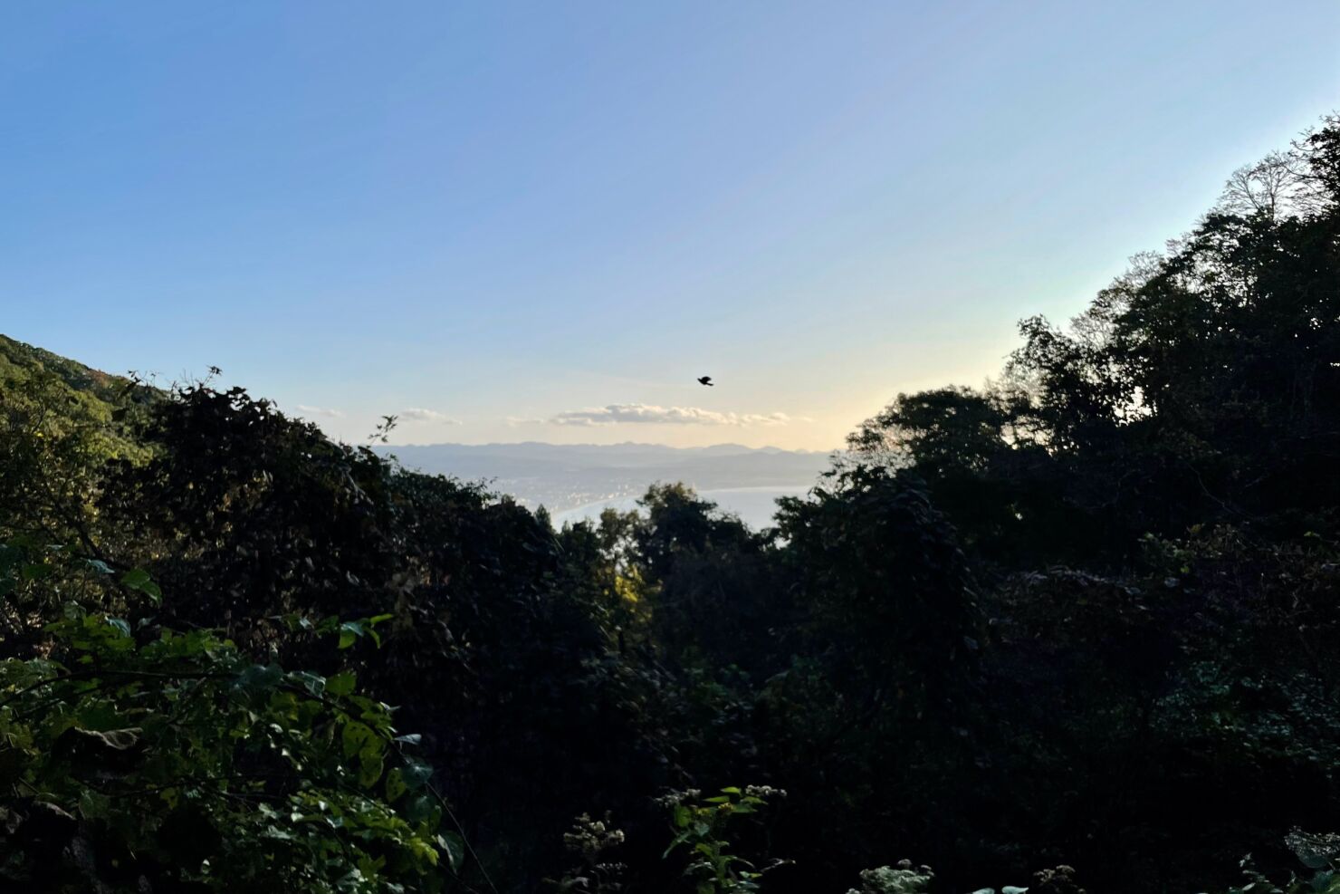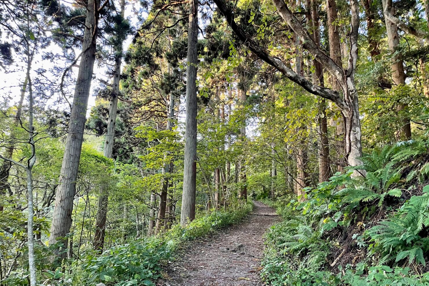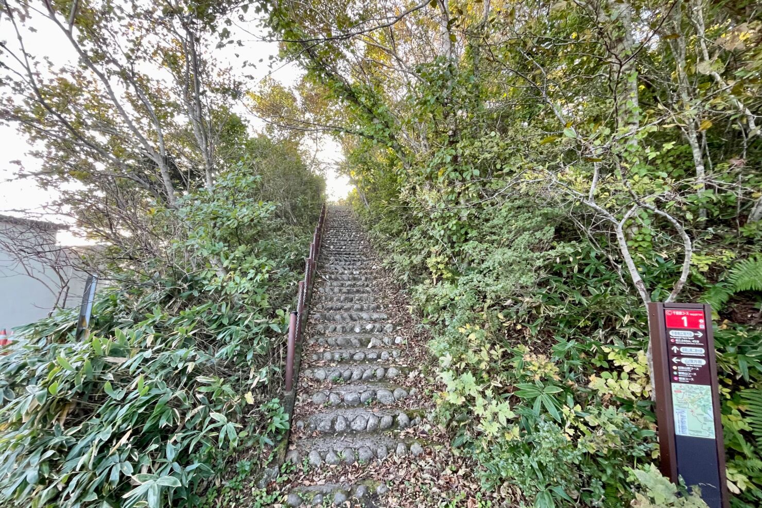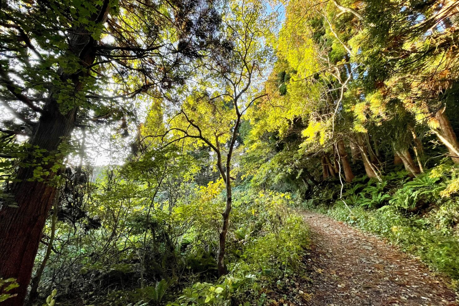 朝日に照らされた木々の揺らめき、野鳥のさえずりが聞こえ、自然を体感します。階段もありますが、基本的には緩やかな傾斜の坂が続きます。