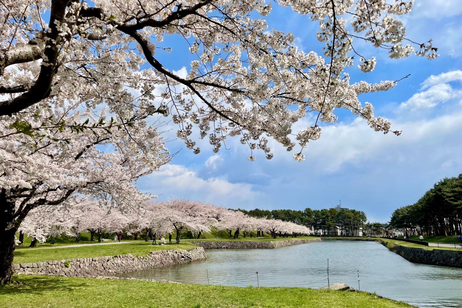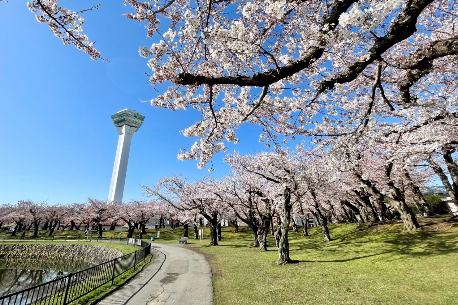 ちなみに堀の外周は約1.8kmあり歩くだけでも30分程度かかりますが、風がない日では、水面に反射する桜や五稜郭タワーを見ることができ思い出の写真撮影などを楽しめるかもしれません。郭内でもいろいろな角度から桜と堀などの景観を見ることができます。お気に入りの場所を探すのも楽しいです。