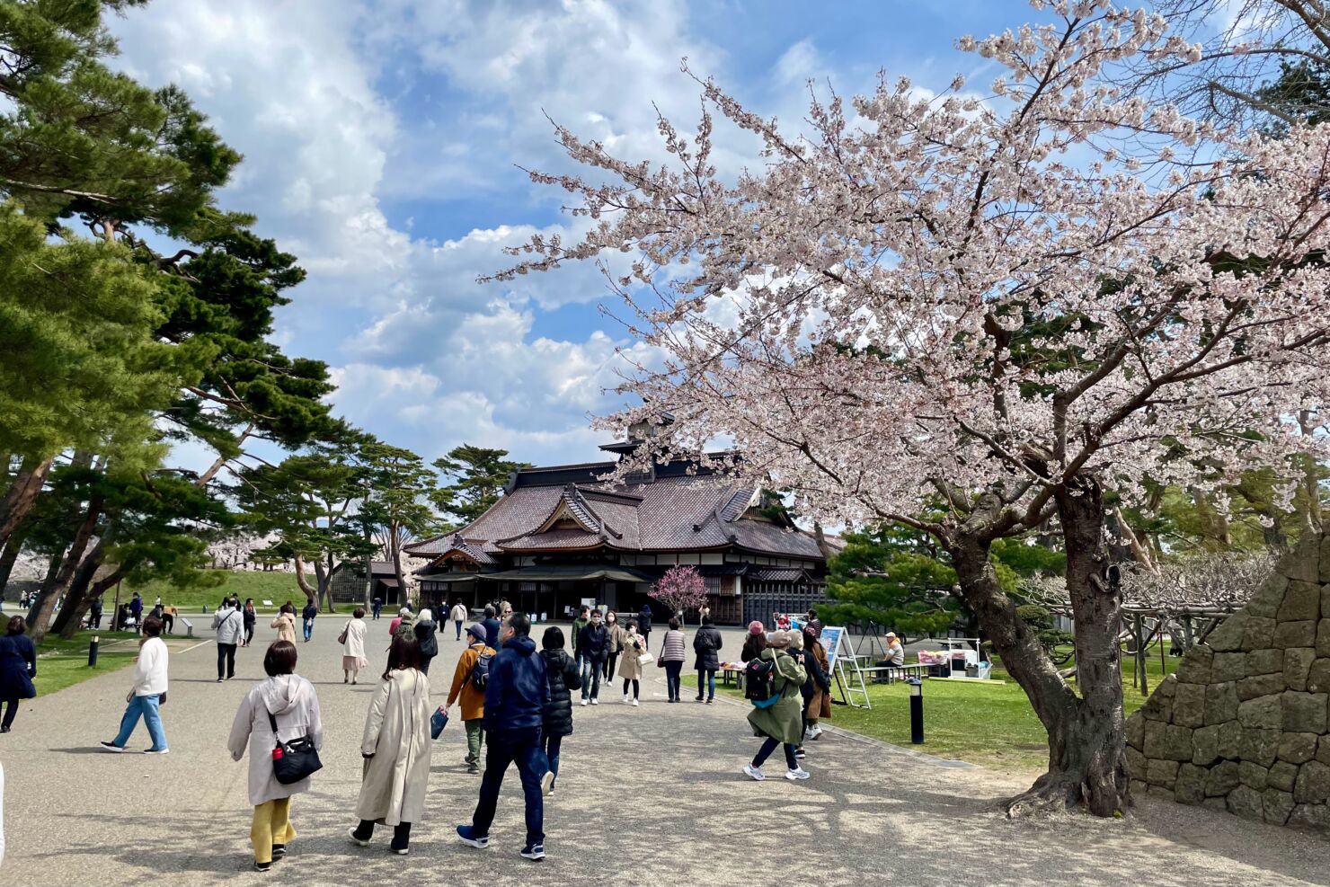 函館の桜二大名所のひとつ五稜郭公園で景色を楽しむ