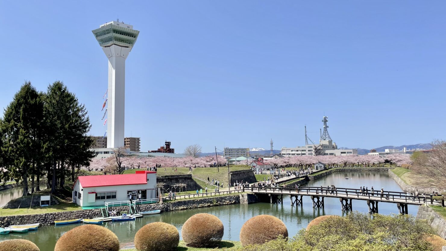幕末・箱館戦争の歴史が残る五稜郭ですが、現在は五稜郭公園として市民や観光客の憩いの場に。春は桜の名所として知られ多くの見物客が訪れ、夏には緑、秋には紅葉、そして冬には雪景色とともにイルミネーションイベントが開催されており、四季折々の姿が楽しめます。隣接する五稜郭タワー展望台からきれいな星型の五稜郭の様子を見れたり、五稜郭に店舗があるご当地グルメや海鮮寿司などでお腹を満たせます。そんな五稜郭の四季と食を堪能するコースをご紹介です。