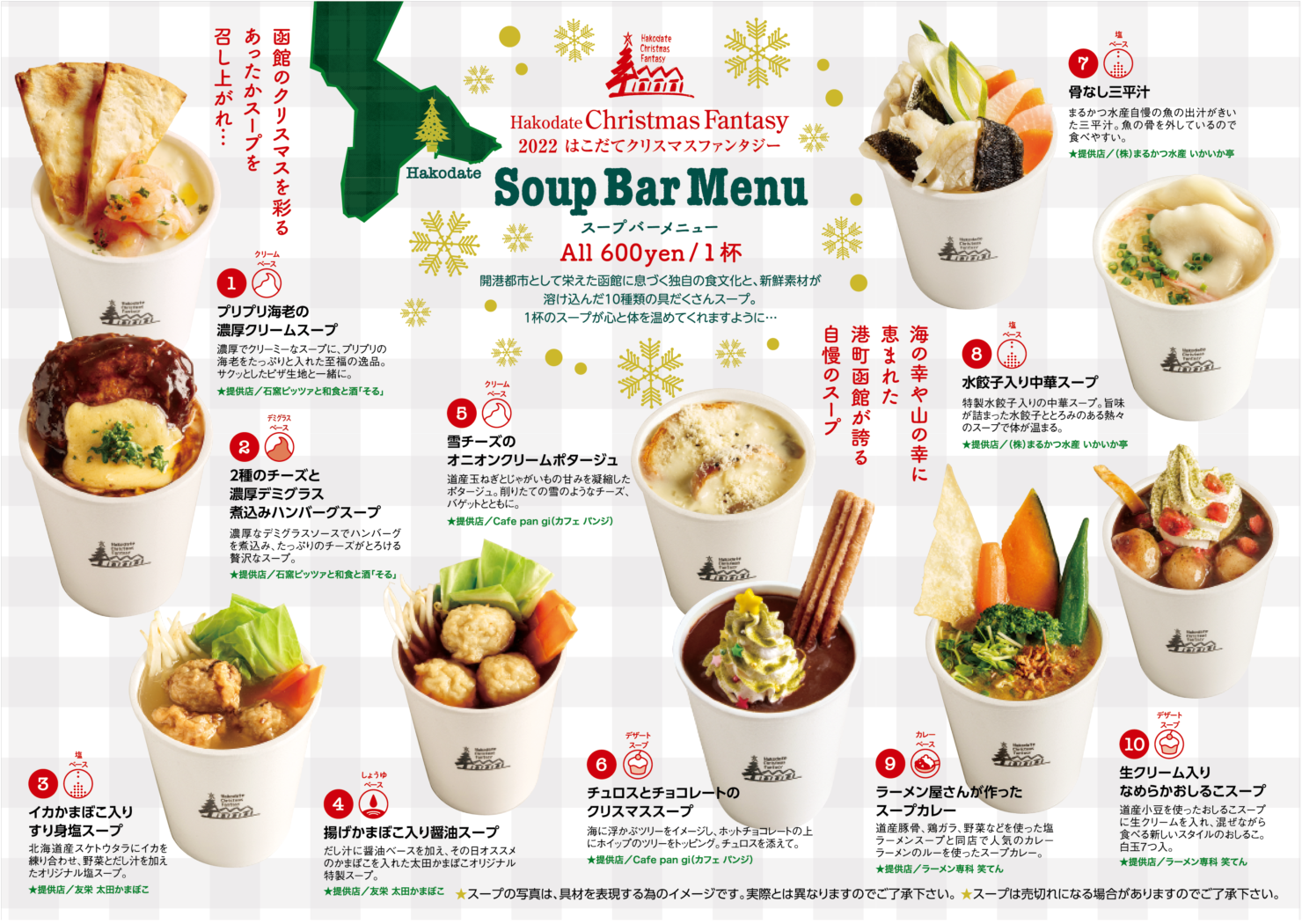 また、感染対策を図りながら3年ぶりにスープバーの出店も行われます!(BAYはこだてイベント広場に場所を変更)