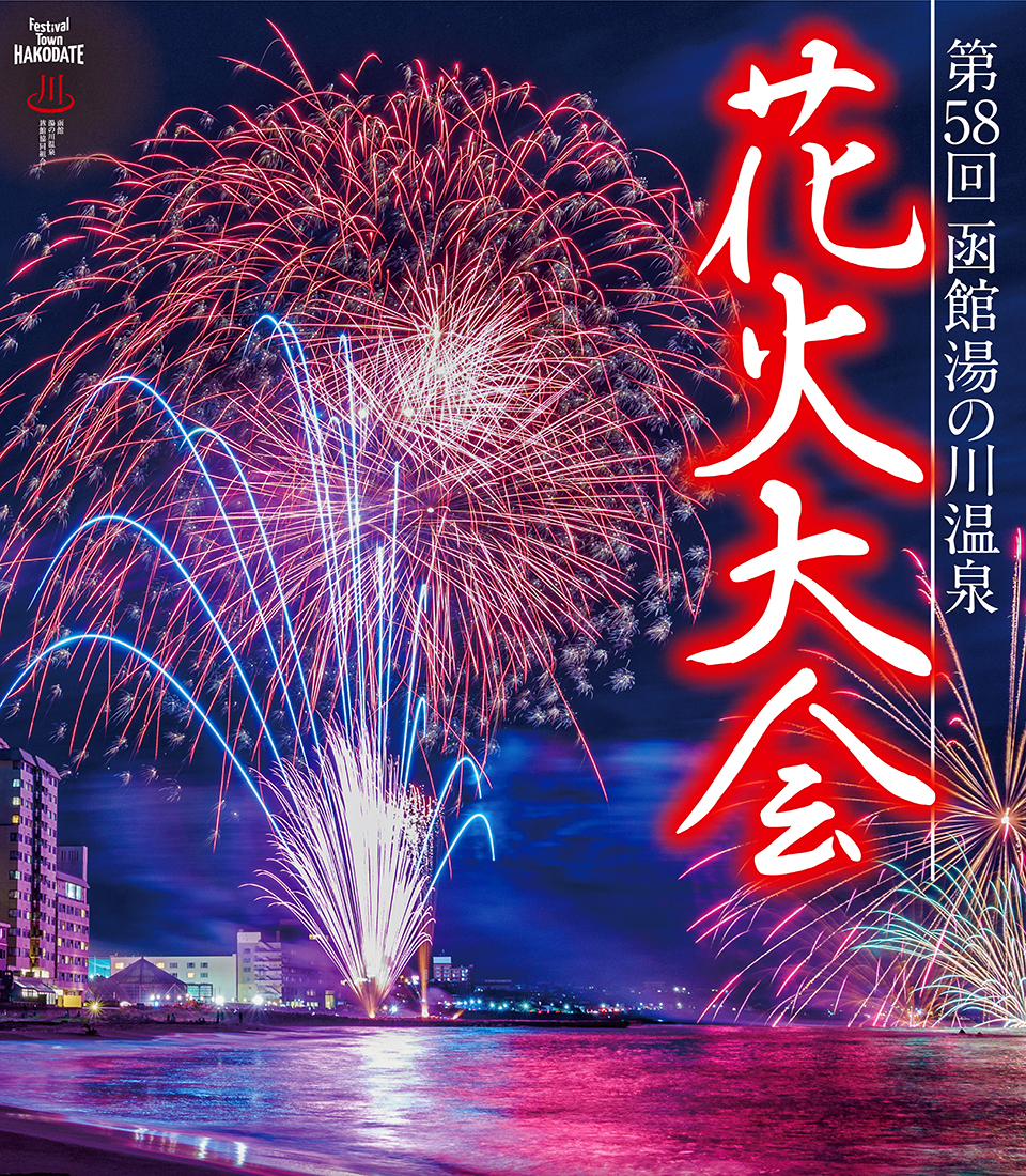 北海道三大温泉郷のひとつとして数えられ親しまれる湯の川温泉。例年8月の中旬に行われている湯の川温泉の花火大会です。花火は松倉川の下流付近から打ち上げられ、津軽海峡沖に浮かぶイカ釣り漁船の漁火とともに夜空を彩ります。花火は松倉川河口付近や函館市熱帯植物園近くの砂浜観覧席などから眺めることができます。