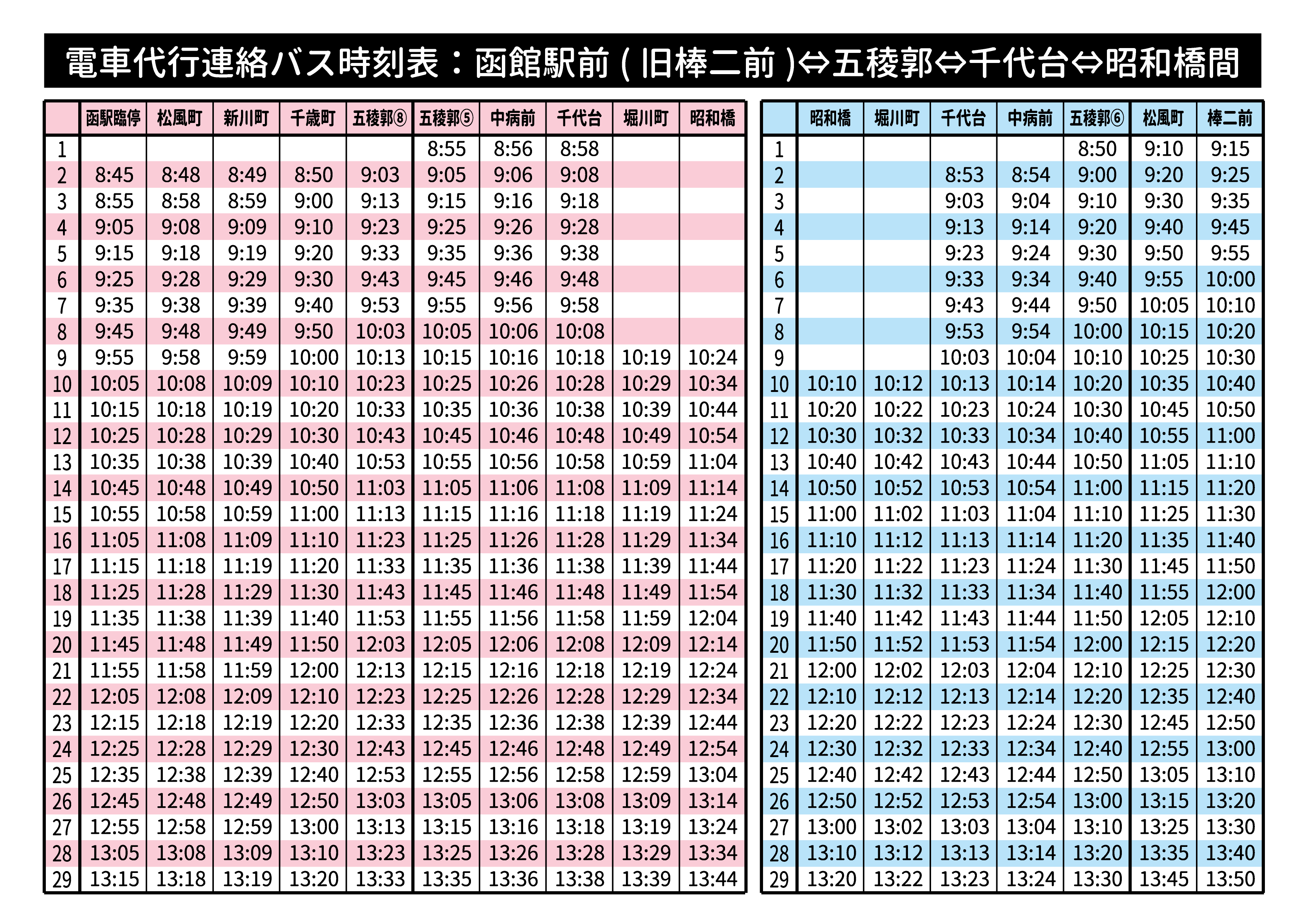 ❷「五稜郭~函館駅前」間の『電車代行連絡シャトルバス』運行について