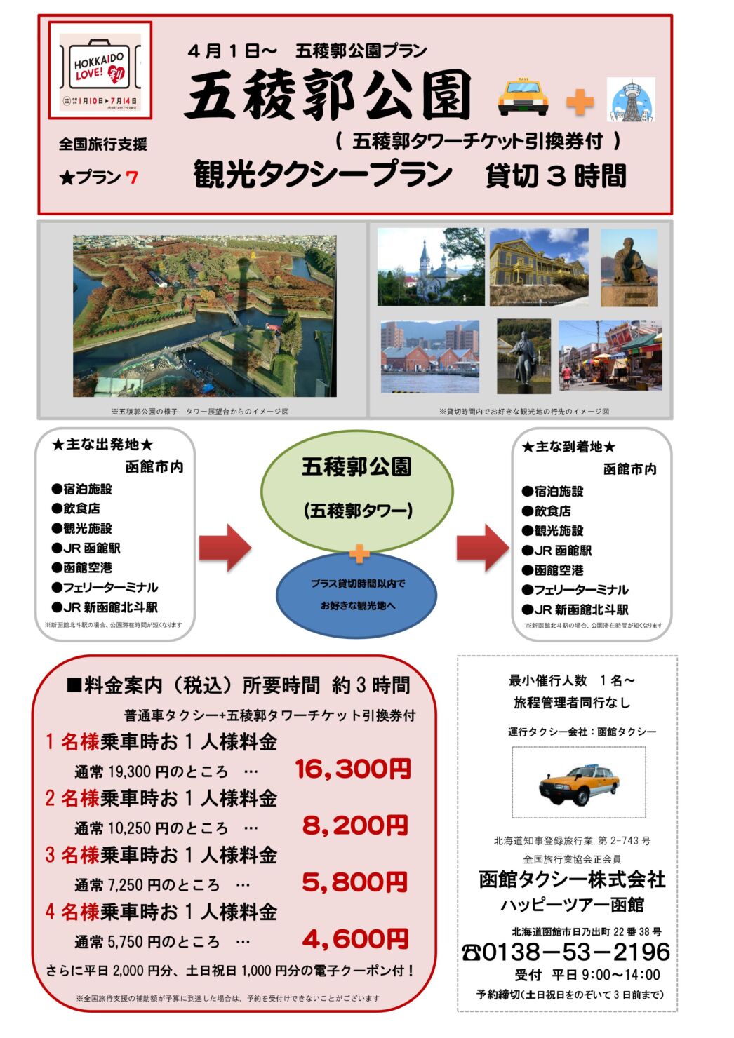 HOKKAIDO LOVE!割(全国旅行支援)対象タクシープランのご紹介(※2023年4月10日販売終了)函館タクシー