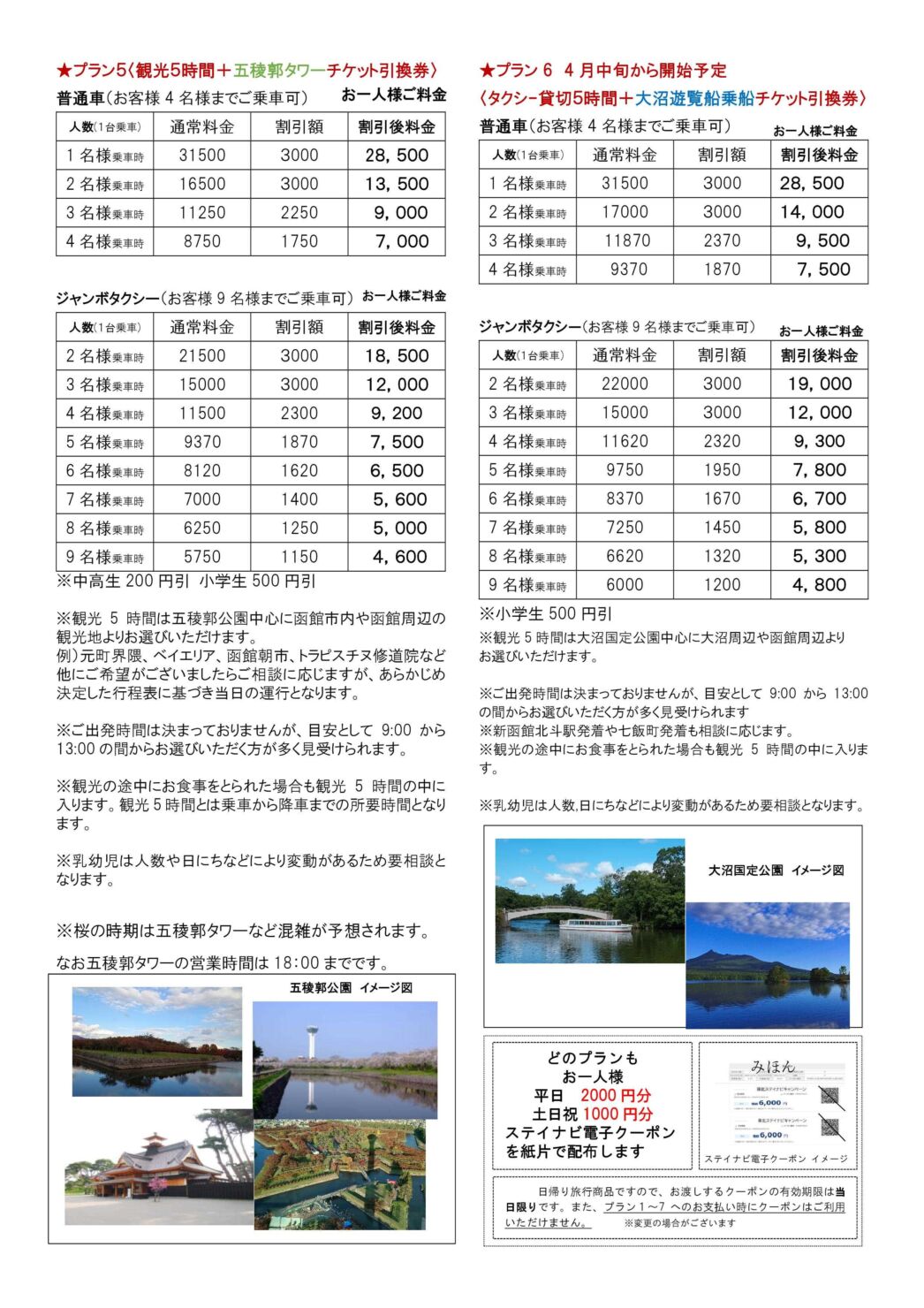 ● プラン6 『タクシー貸切5時間+大沼遊覧船乗船チケット引換券』※4月中旬から開始予定