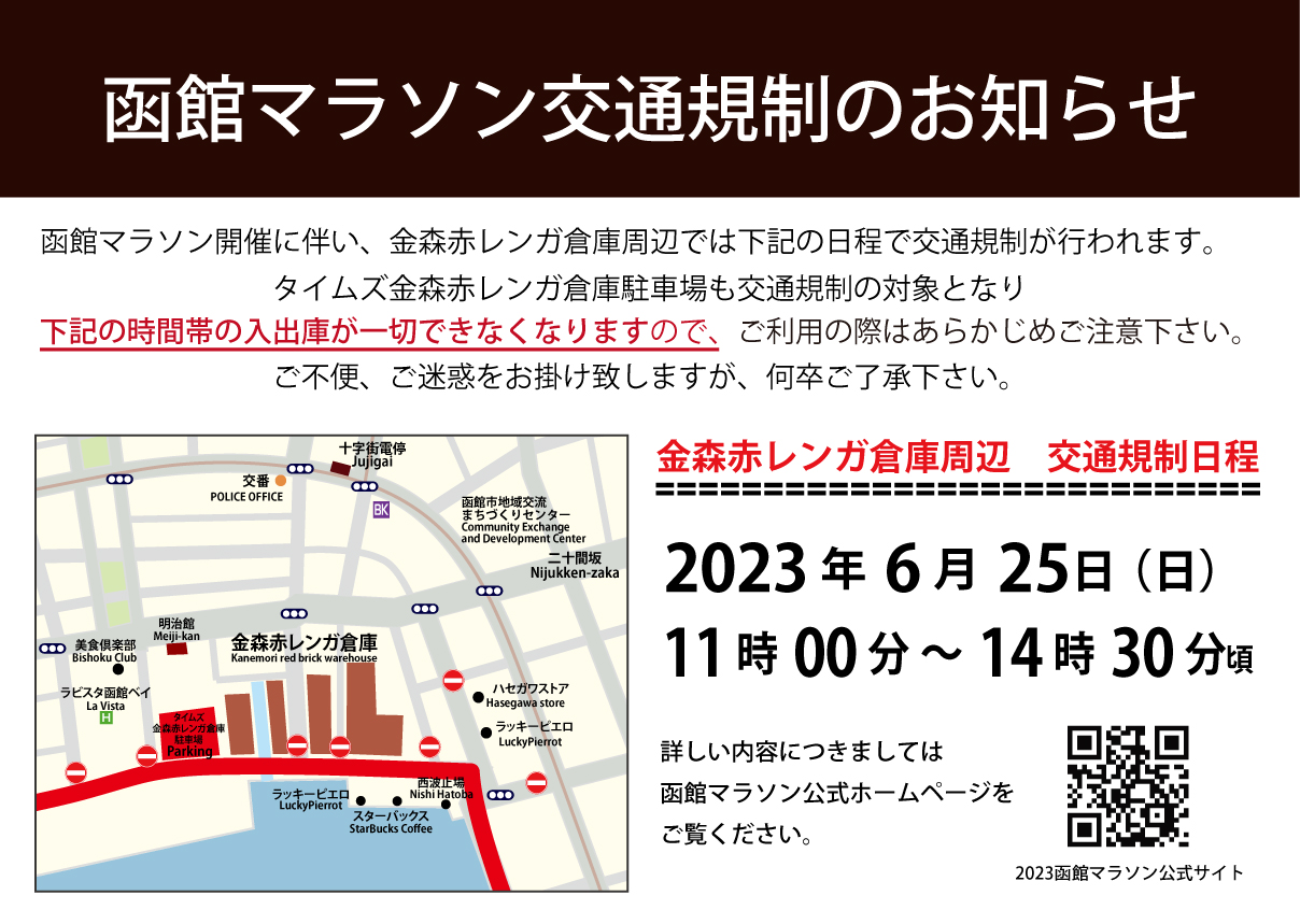 2023函館マラソン開催による交通規制のご案内金森赤レンガ倉庫