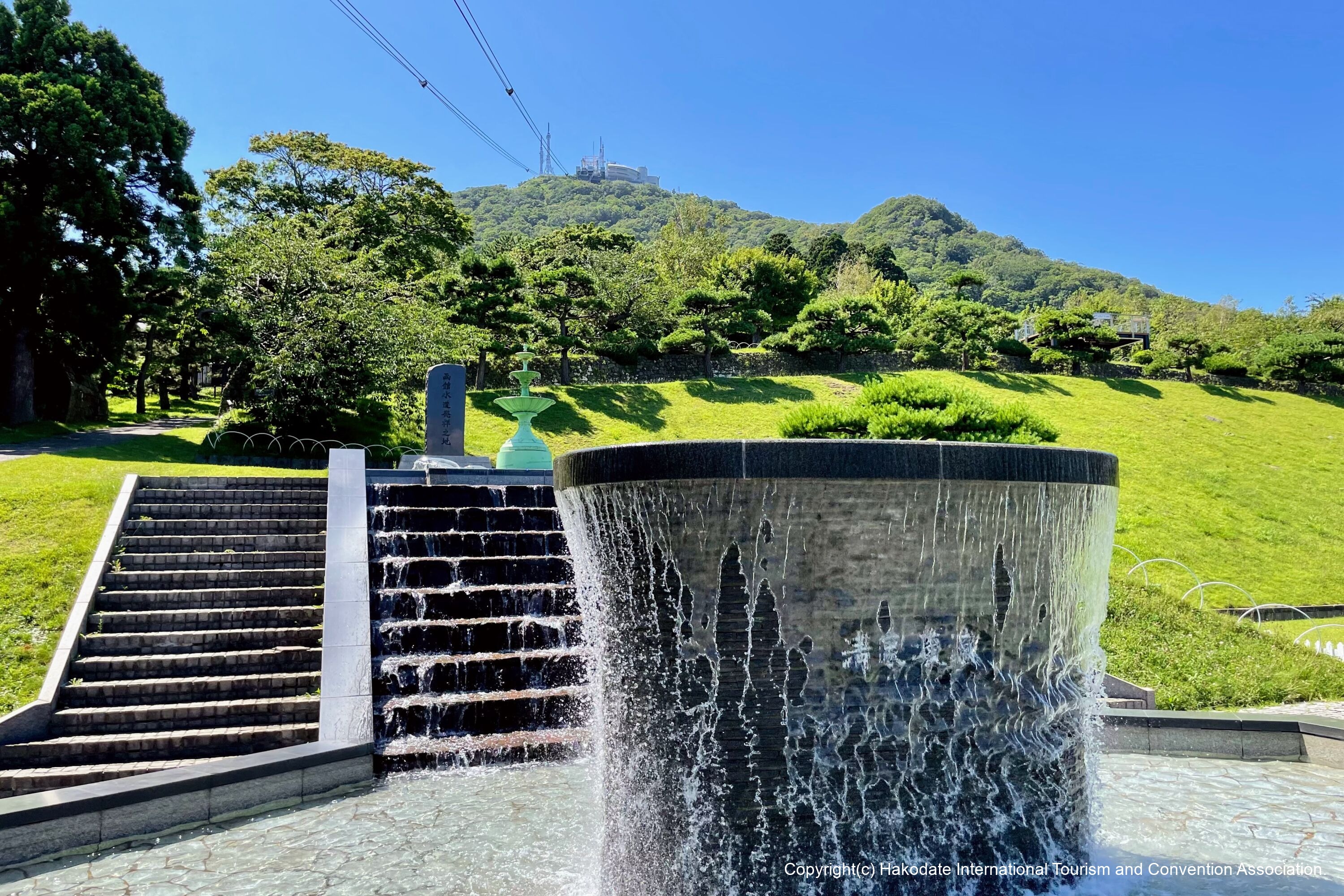 函館水道創設の1889(明治22)年に函館山の麓に建設された元町配水場は、現役では日本最古の配水池で、現在も函館山周辺の市民約1万人に水を供給している、厚生省が企画した近代水道百選にも選ばれている施設です。2019(令和元)年には、新たに市街地や函館港を一望できる物見台やベンチが設置されました。函館山ロープウェイの山麓駅からほど近い西部地区観光の中心に位置しており、観光途中の一息を入れるにはぴったりのスポットとなっています。