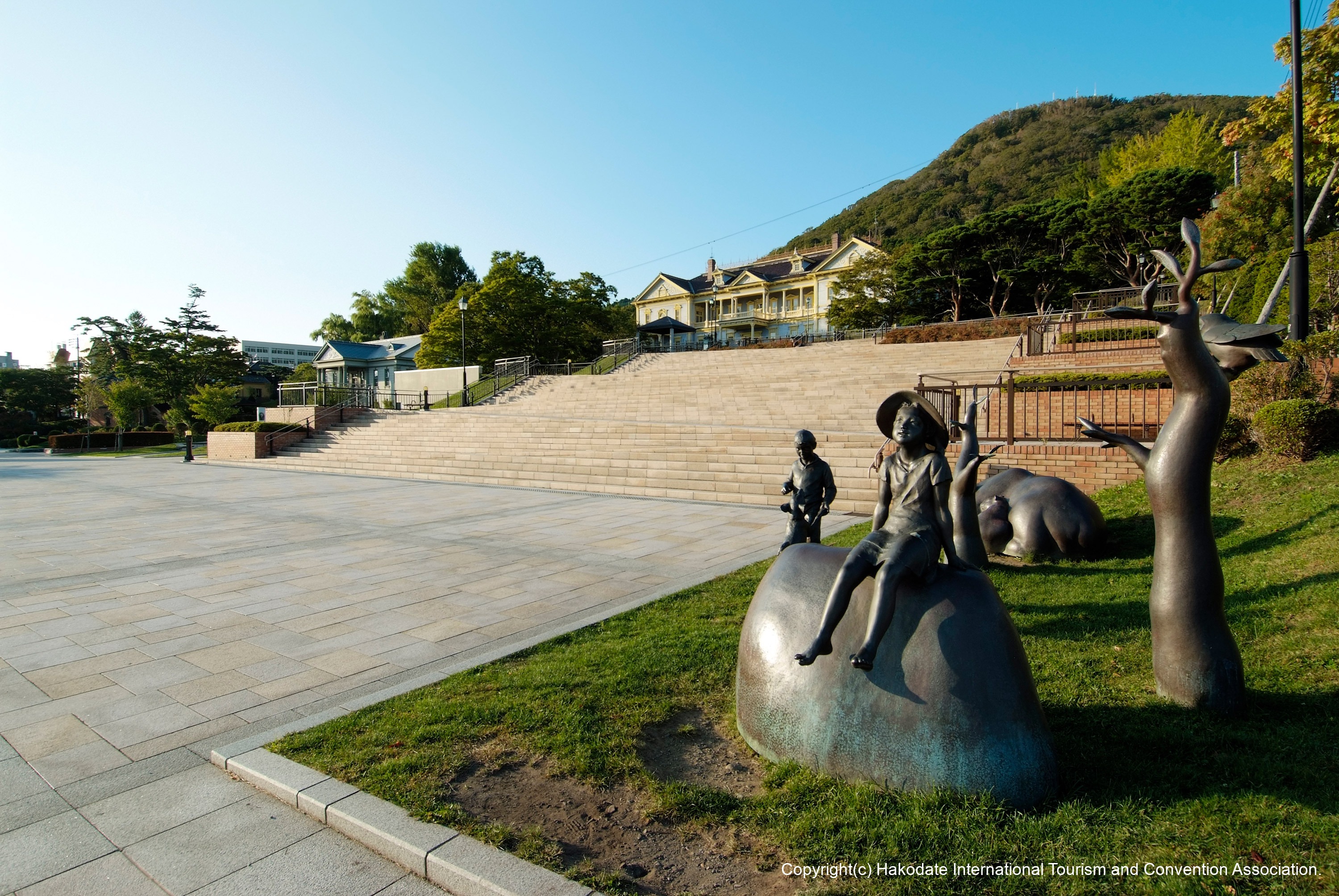 基坂のうえに位置する港を一望できる公園。明治から昭和初期にかけて箱館奉行所等が設置されるなど道南の行政の中心であり、旧北海道庁函館支庁庁舎や旧開拓使書籍庫などが現在に残されている。