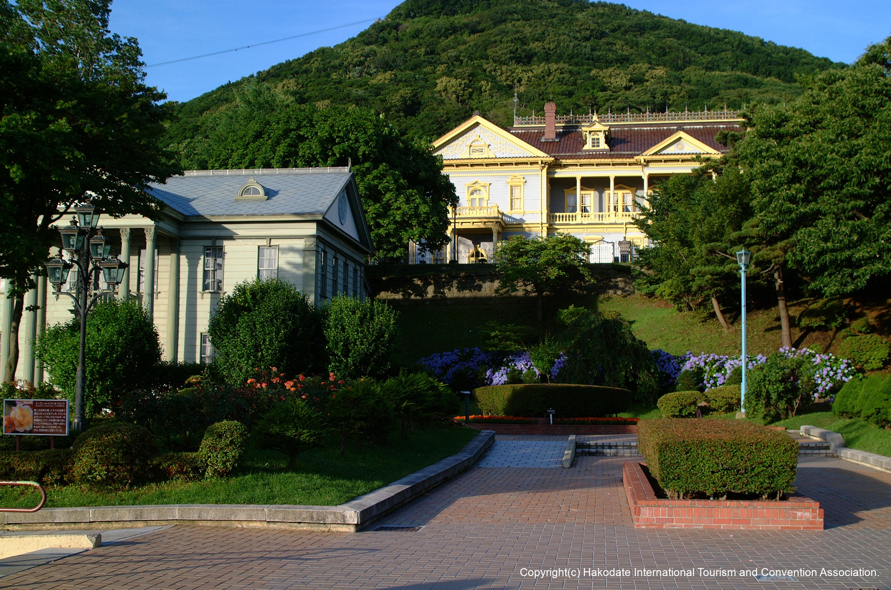 基坂のうえに位置する港を一望できる公園。明治から昭和初期にかけて箱館奉行所等が設置されるなど道南の行政の中心であり、旧北海道庁函館支庁庁舎や旧開拓使書籍庫などが現在に残されている。