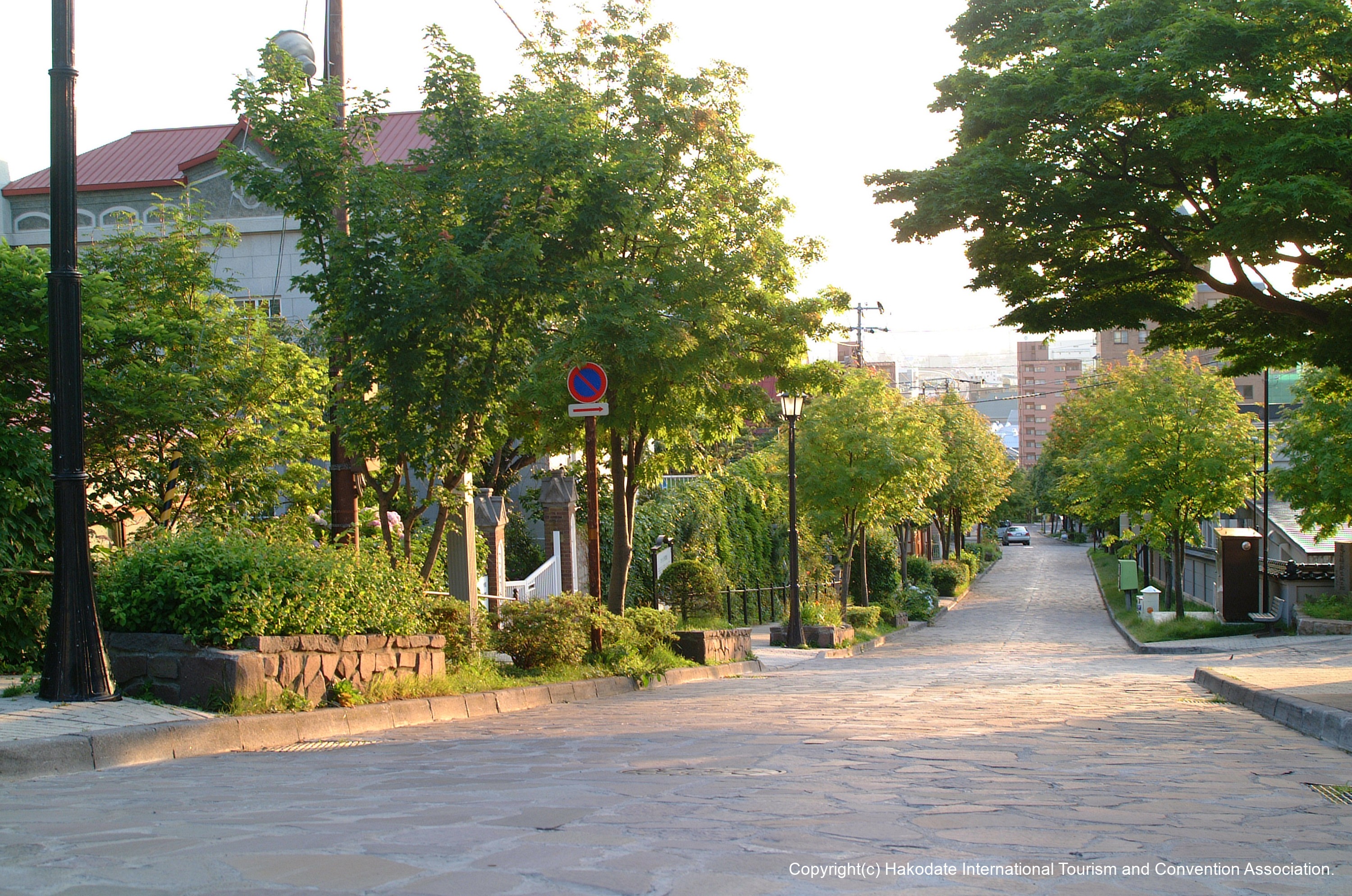坂の入口に大三という家印の郷宿(ごうやど)があったのが坂名の由来。教会群へ続く石畳の坂道は秋にはナナカマドの実が赤く染まり風情がある。国土交通省が定める「日本の道100選」のひとつ。函館ハリストス正教会の横からさらに勾配が急になりアイヌ語で“おじいさん”を意味する「チャチャ登り」という名称に変わる。