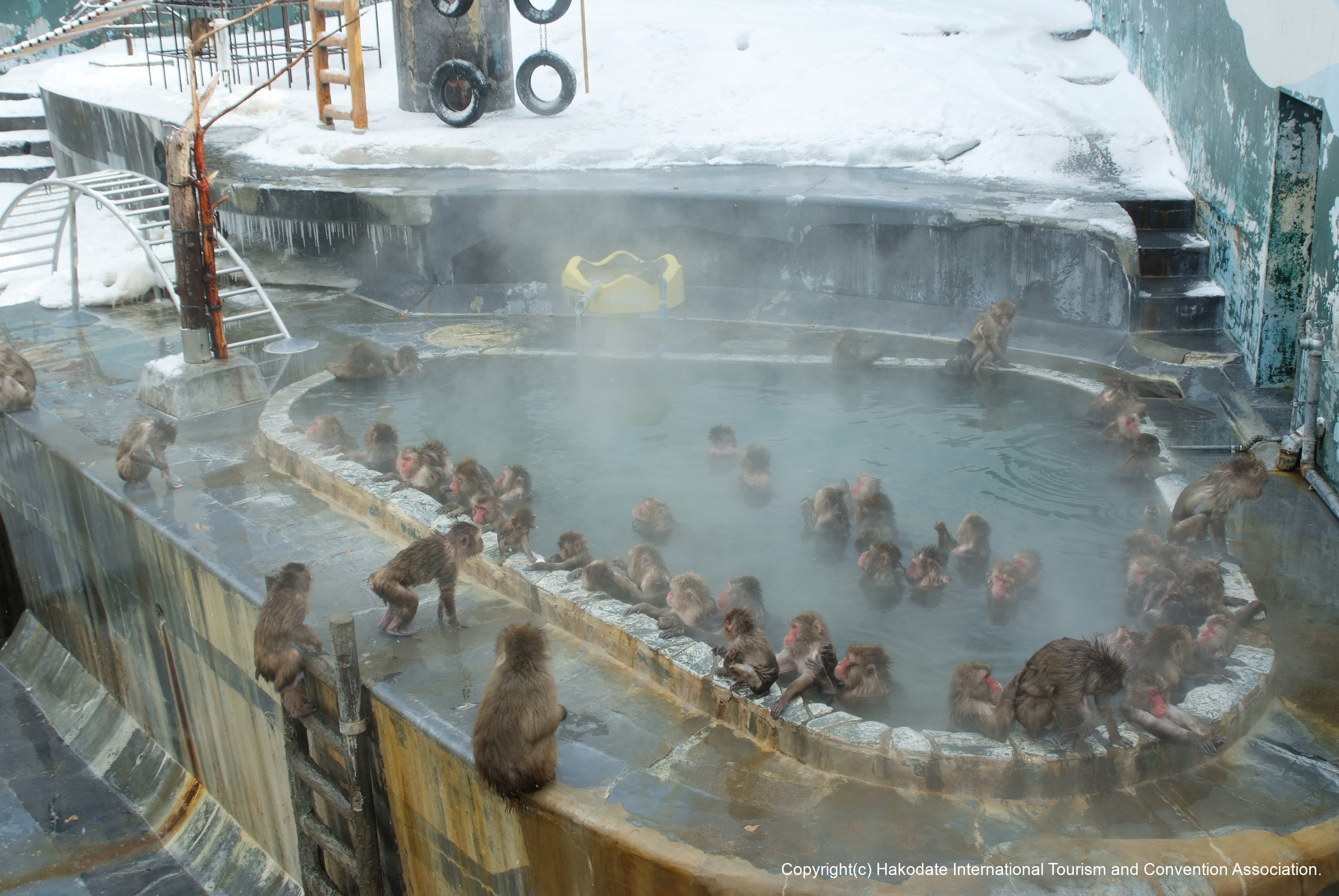 この施設は、約300種、3,000本の熱帯植物が植えられています。冬の間は、温泉に入るニホンザルの姿が人気を呼んでいます。