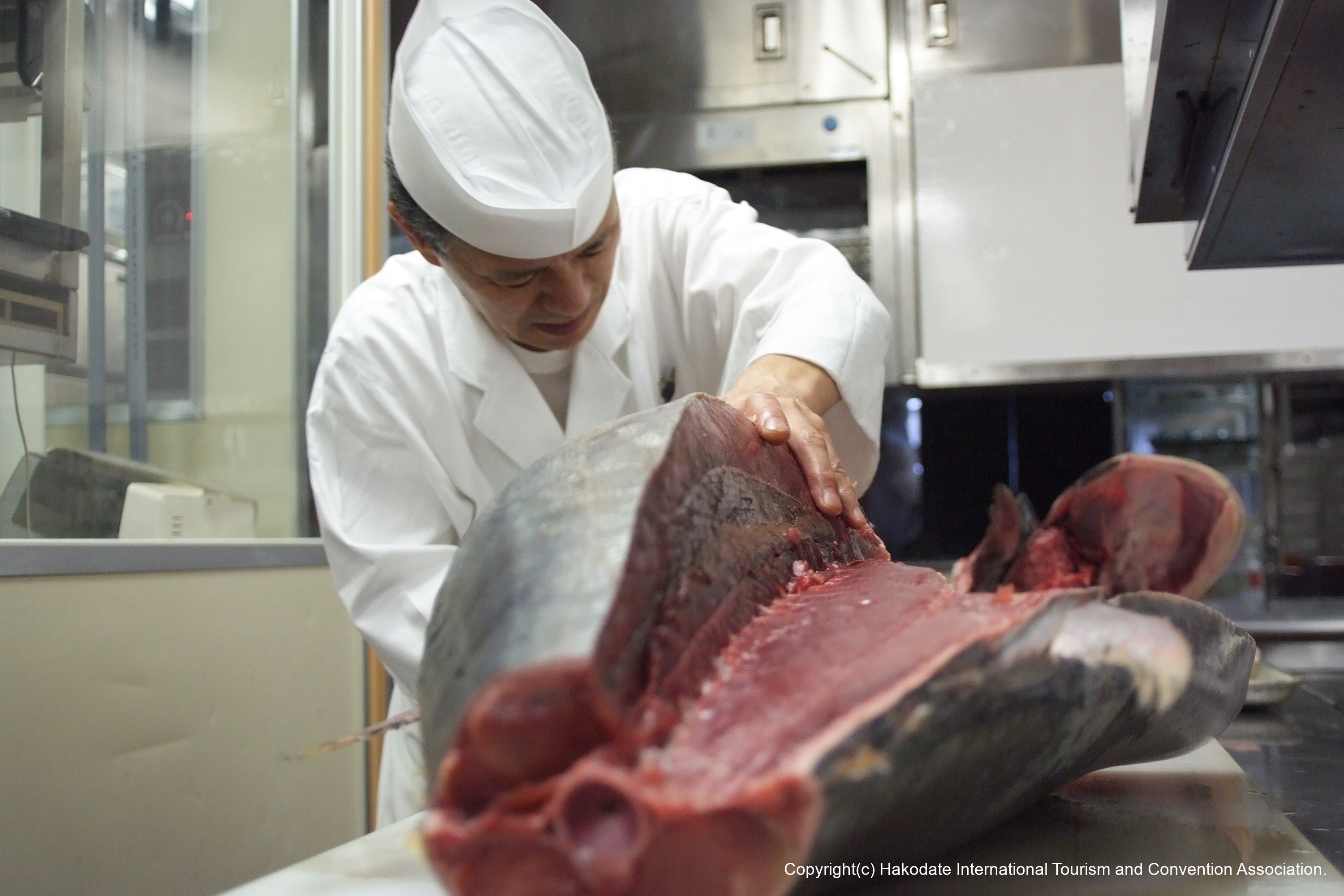 戸井で水揚げされる津軽海峡のマグロは、近年、函館ブランドとして人気が高まっています。「戸井マグロ」の特徴は、漁法や捕獲後の伝統的な処理方法により高い鮮度を保持することで、関東や関西の主要市場からも高い評価を得ています。