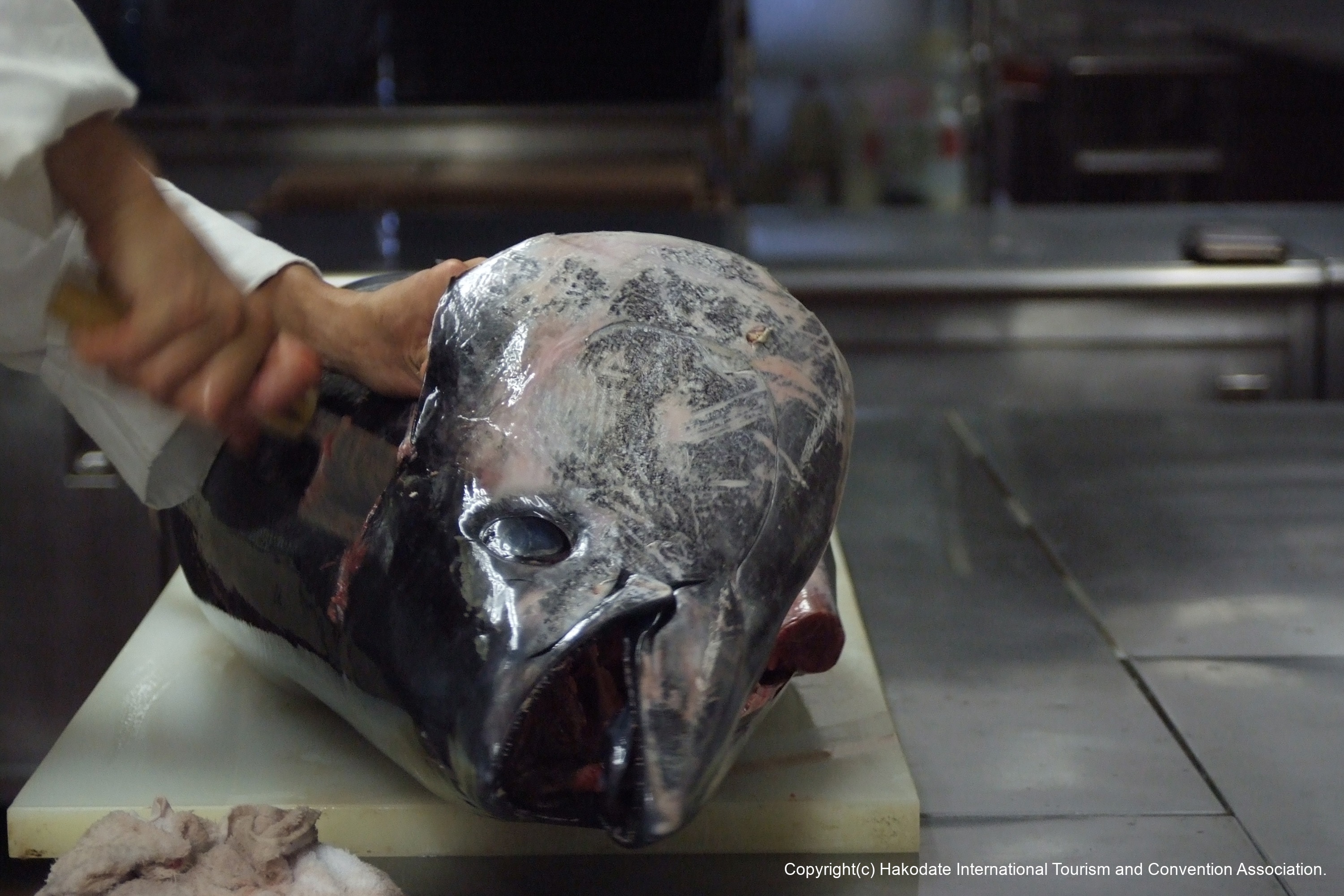 戸井で水揚げされる津軽海峡のマグロは、近年、函館ブランドとして人気が高まっています。「戸井マグロ」の特徴は、漁法や捕獲後の伝統的な処理方法により高い鮮度を保持することで、関東や関西の主要市場からも高い評価を得ています。