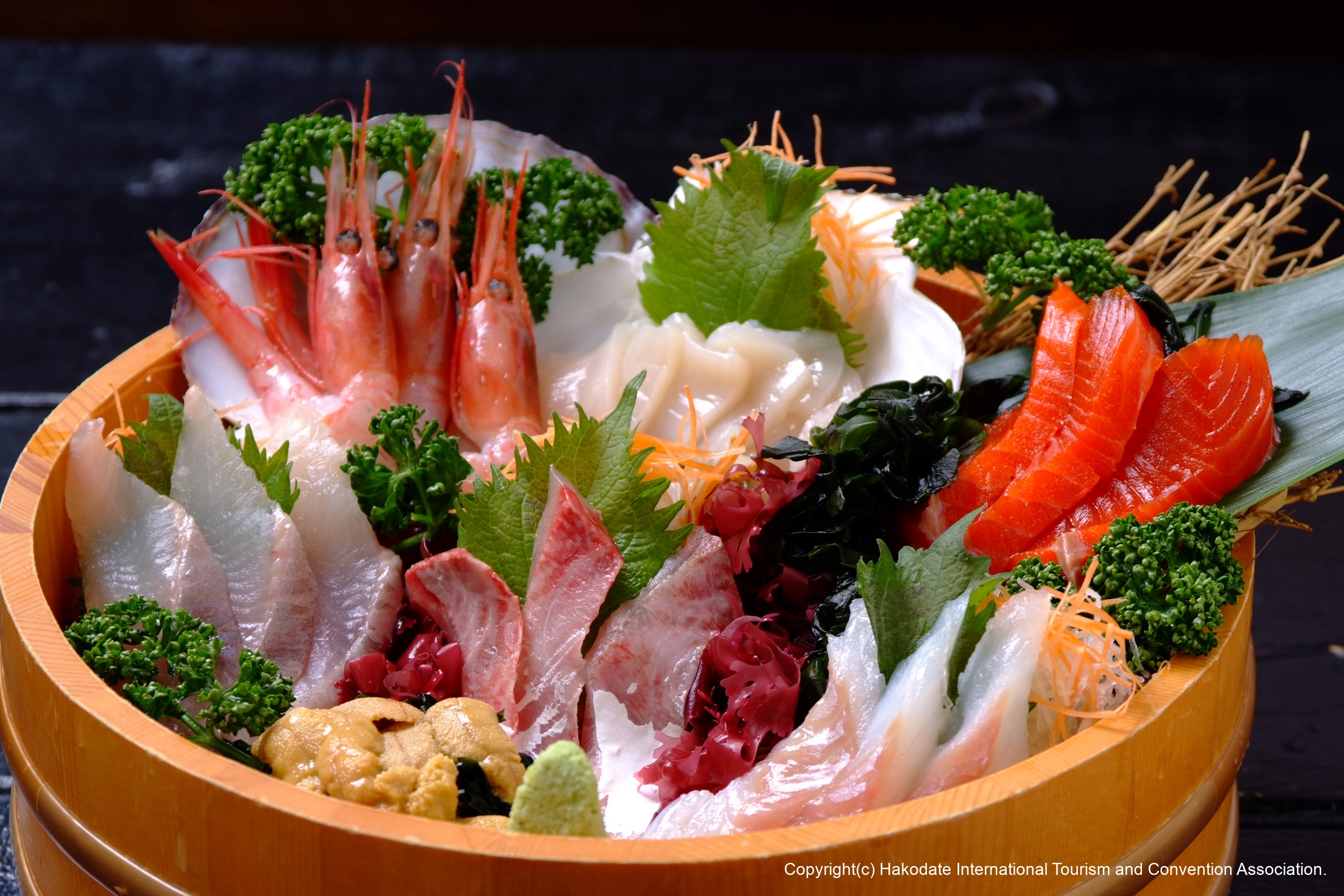 海に囲まれた函館は、スルメイカ・コンブ・マグロなど海産物の宝庫です。刺身や名物となっている海鮮丼など旬の味を楽しむことが出来ます。まずは、函館の味を堪能して下さい。