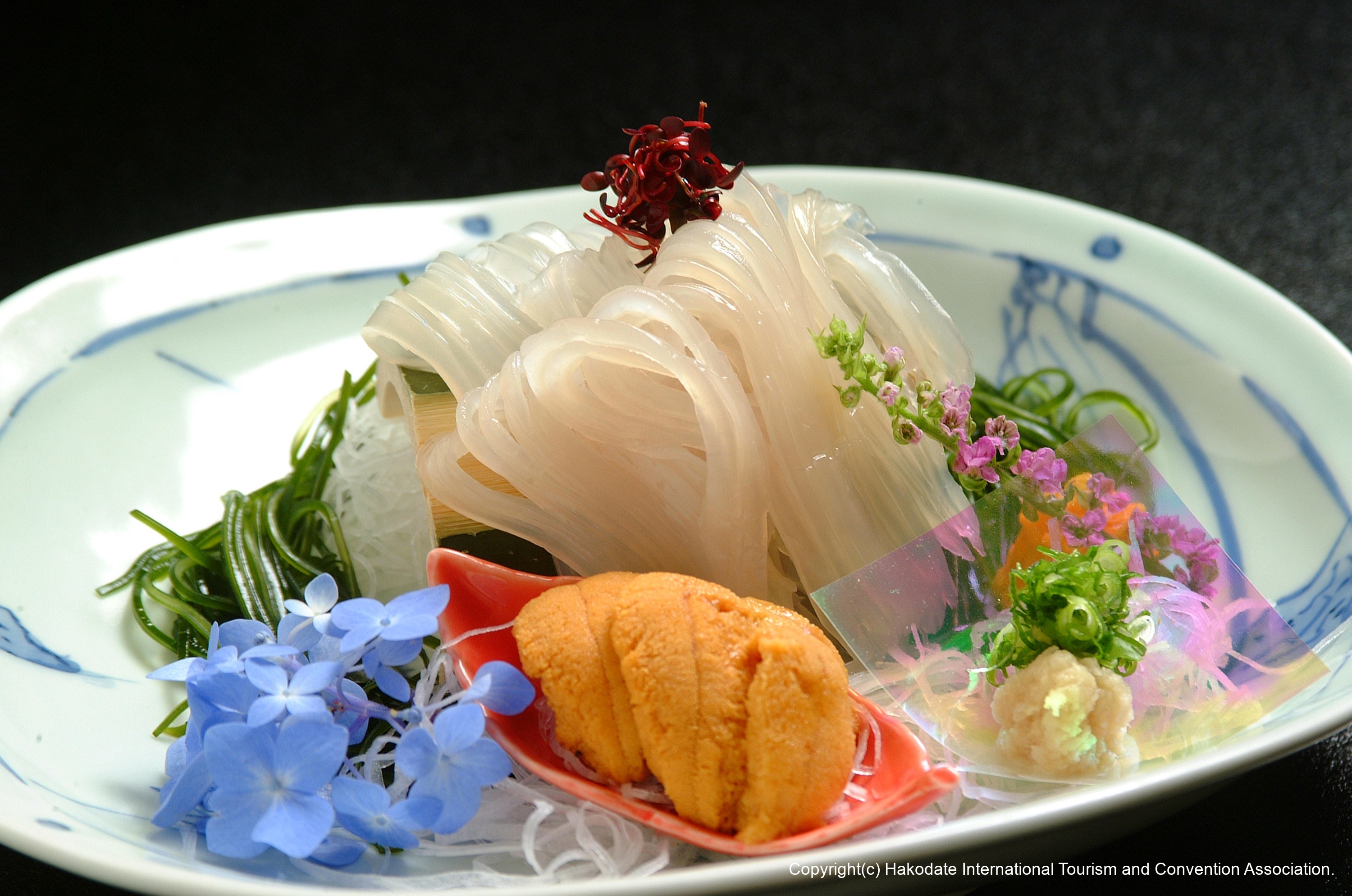 函館市は昔からスルメイカの産地として知られ、イカ釣り船の漁り火や新鮮なイカを原料とした「イカ刺し」、「イカソーメン」は観光客の味覚を満喫させています。夜景と並んで重要な観光資源となっており、1989年(平成元)に市の魚に制定されました。
