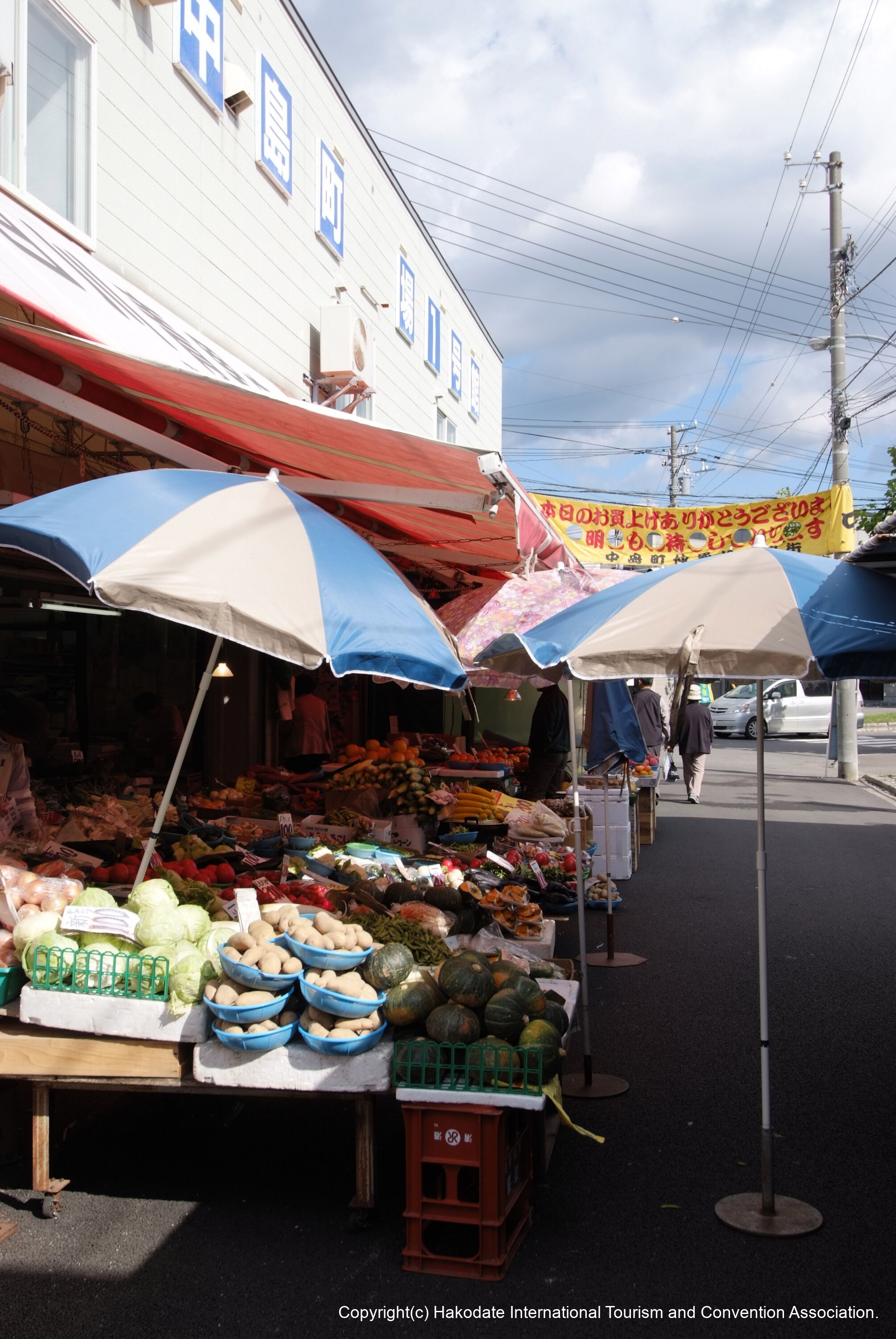 函館市民に根強い人気を誇る中島廉売。さまざまな店が200軒以上軒を連ね、通りには一年中露店が出ている。