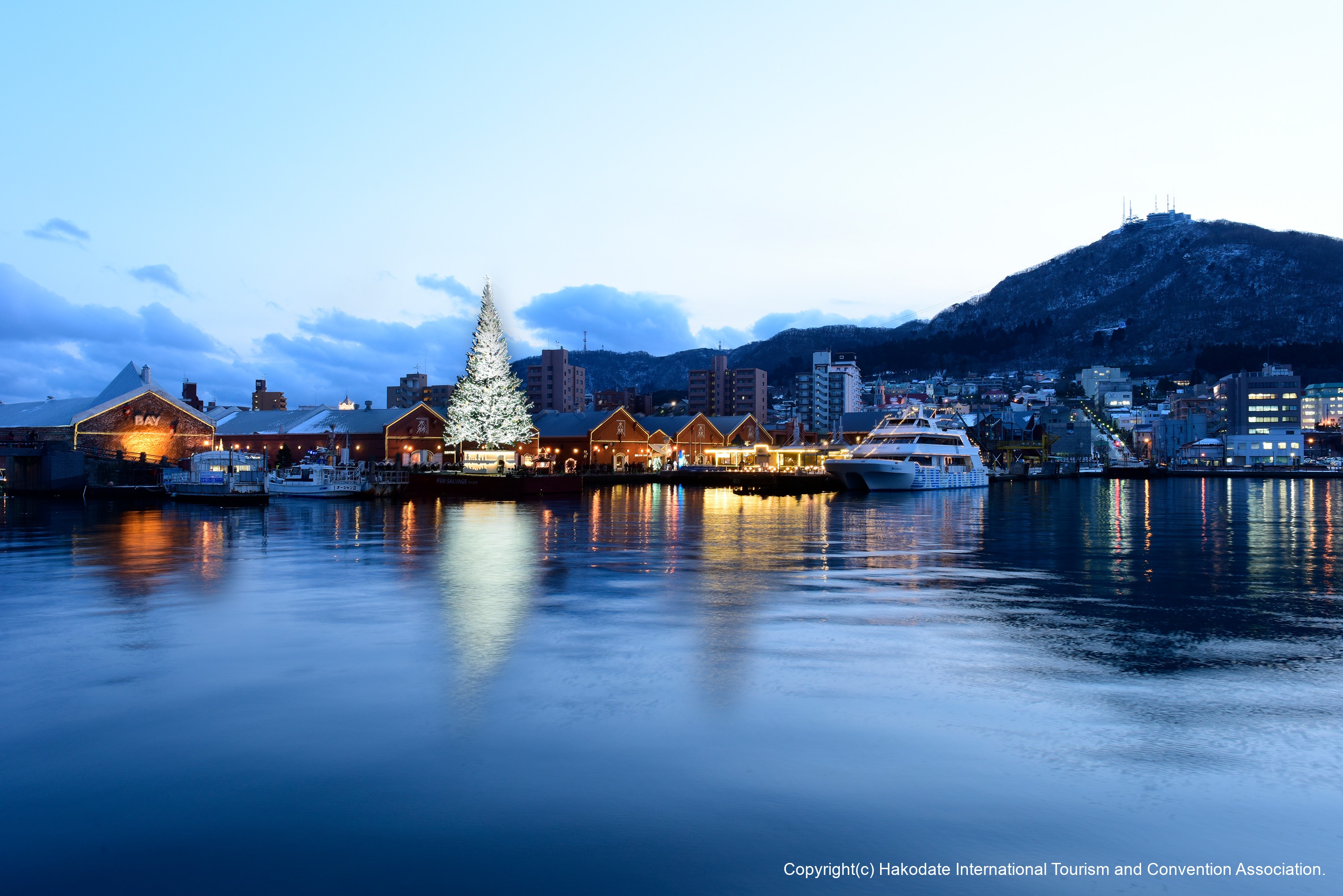 姉妹都市カナダ・ハリファックス市から贈られる巨大なもみの木が約15万球のイルミネーションで輝き、赤レンガ倉庫群前の海上に浮かびます。毎夜の花火との共演が、幻想的な雰囲気を醸し出します。