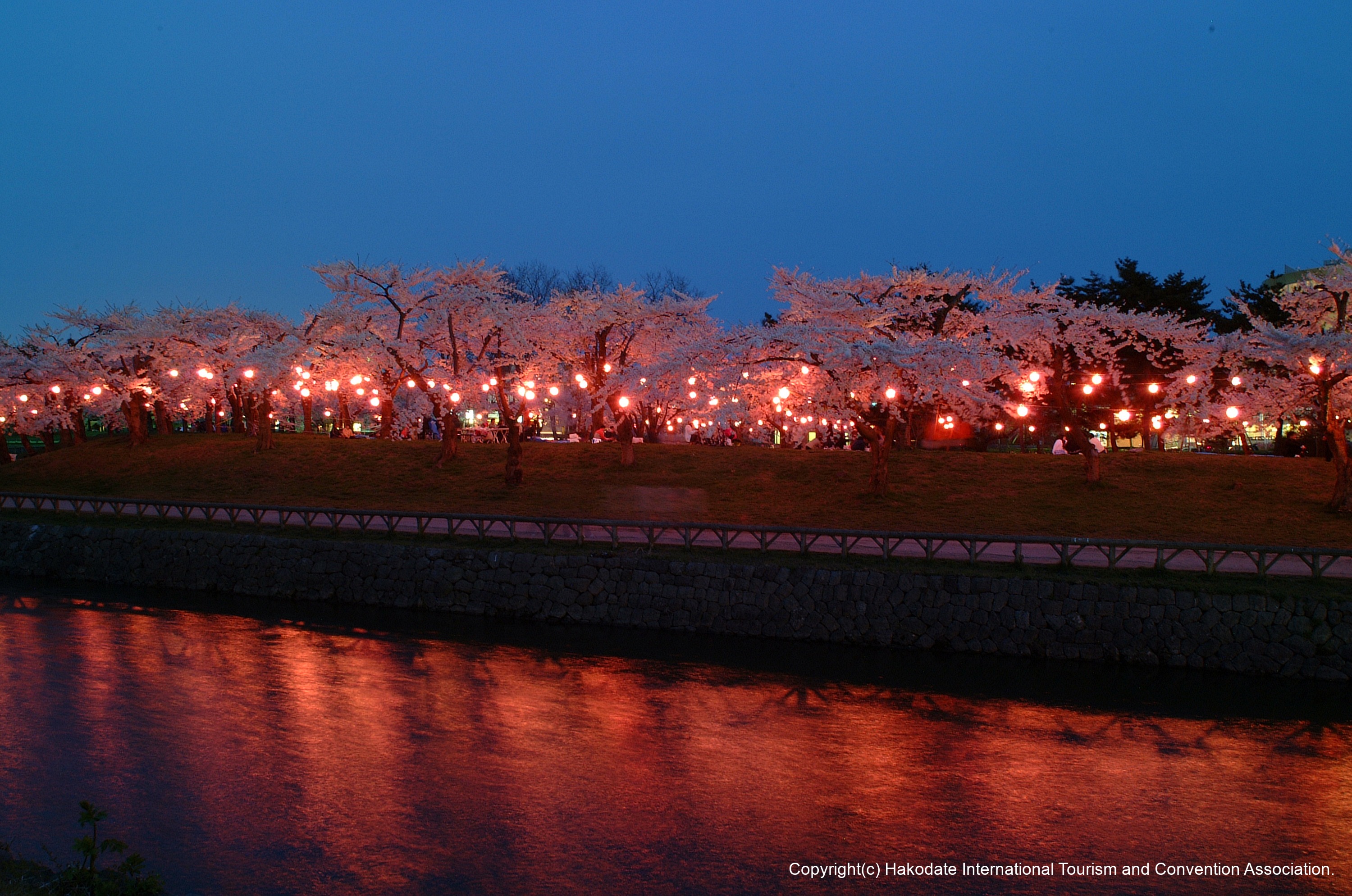 函館公園とともに函館を代表する桜観賞スポットである五稜郭公園。GWに合わせ咲き誇る桜の季節はライトアップによる夜桜観賞をお楽しみいただけます。