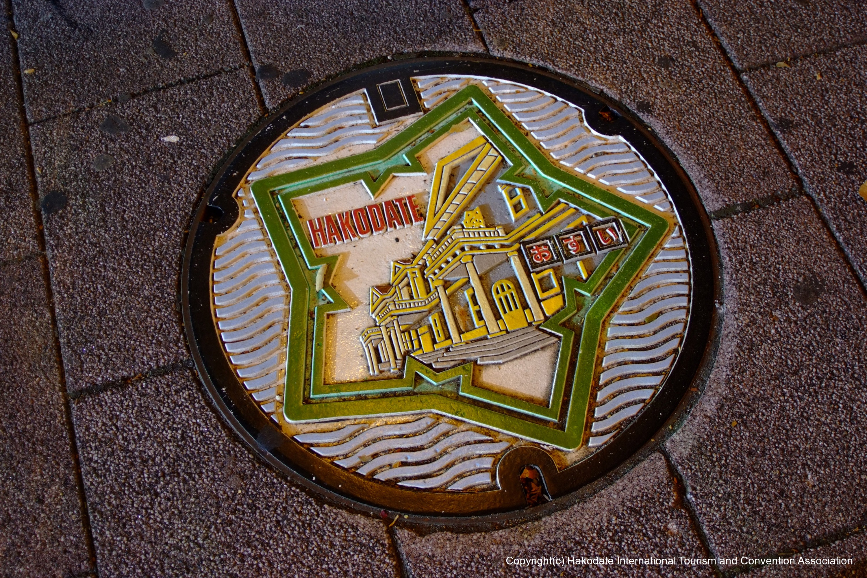 1980年代から各市町村では、ご当地の花や木、特産物など独自のデザインを採用するようになり、デザインマンホールが全国的に急速に普及していきました。函館には「イカ」、「五稜郭」、「観光シンボルマーク」、「タコ」の4種類があります