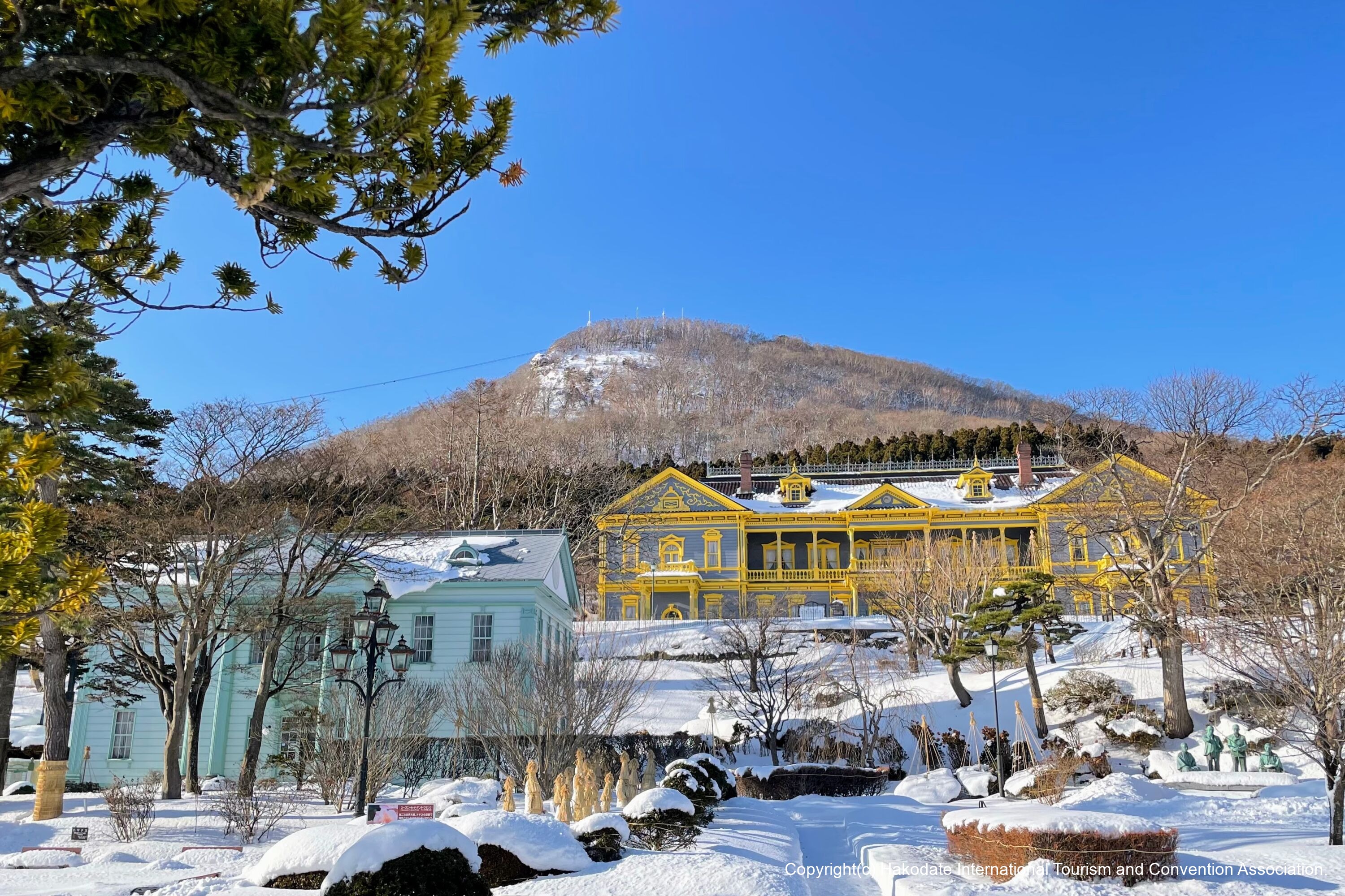 基坂のうえに位置する港を一望できる公園。明治から昭和初期にかけて箱館奉行所等が設置されるなど道南の行政の中心であり、旧北海道庁函館支庁庁舎や旧開拓使書籍庫などが現在に残されている。