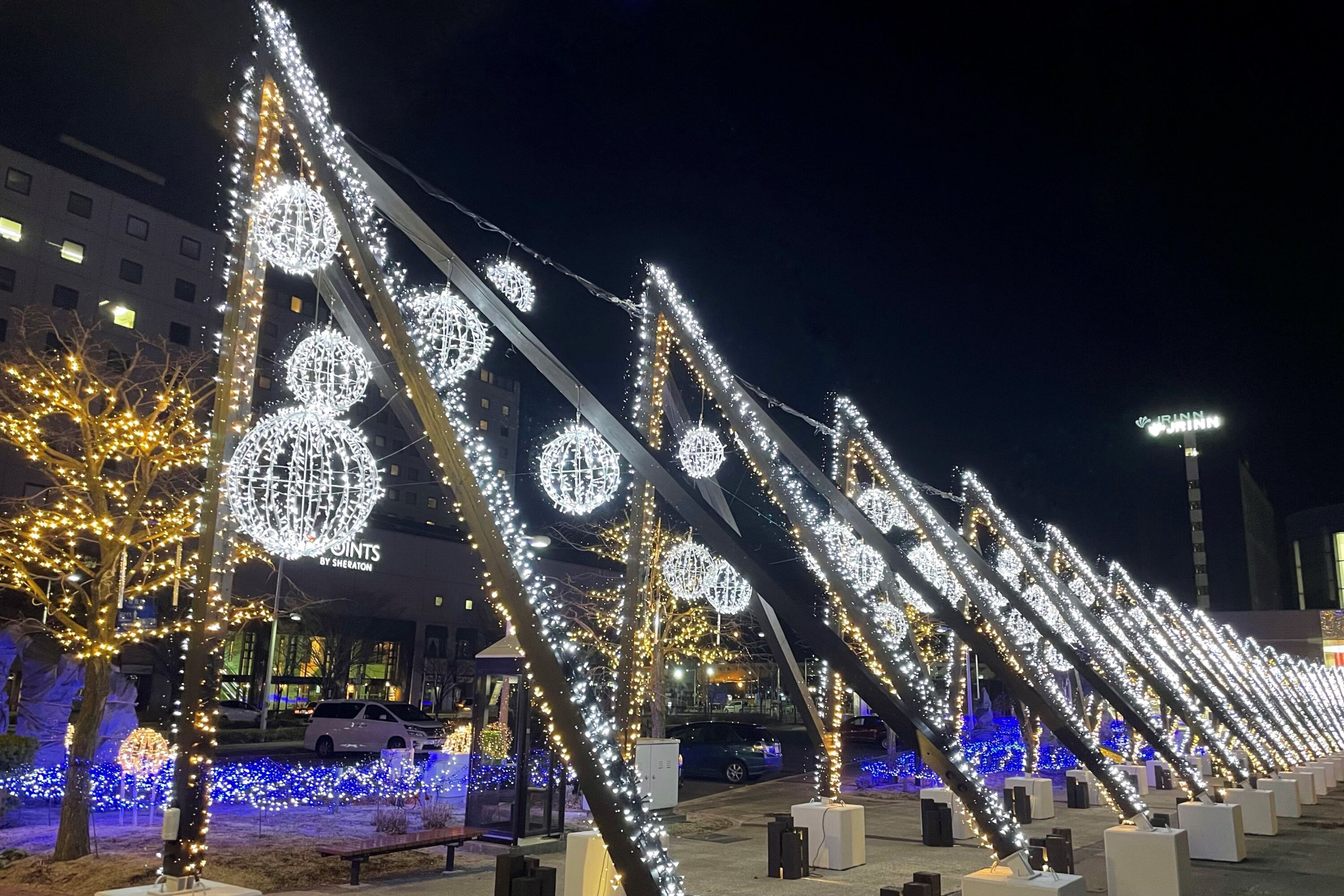 函館駅の近くにある大門エリアにメルヘン&ポップなイルミネーションスポットが誕生。貝殻をモチーフにした可愛らしいオブジェが皆様をお出迎え。