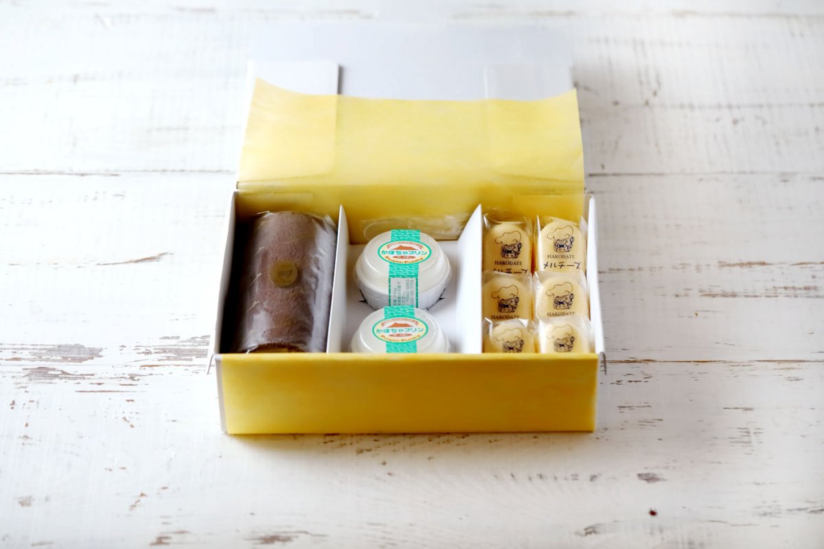 メルチーズでおなじみのプティ・メルヴィーユ。人気スイーツである、ひと口チーズスフレ『メルチーズ』を始め、かぼちゃのプリン、生チョコロールの3種類をセットにしたギフトボックスをプレゼント♪