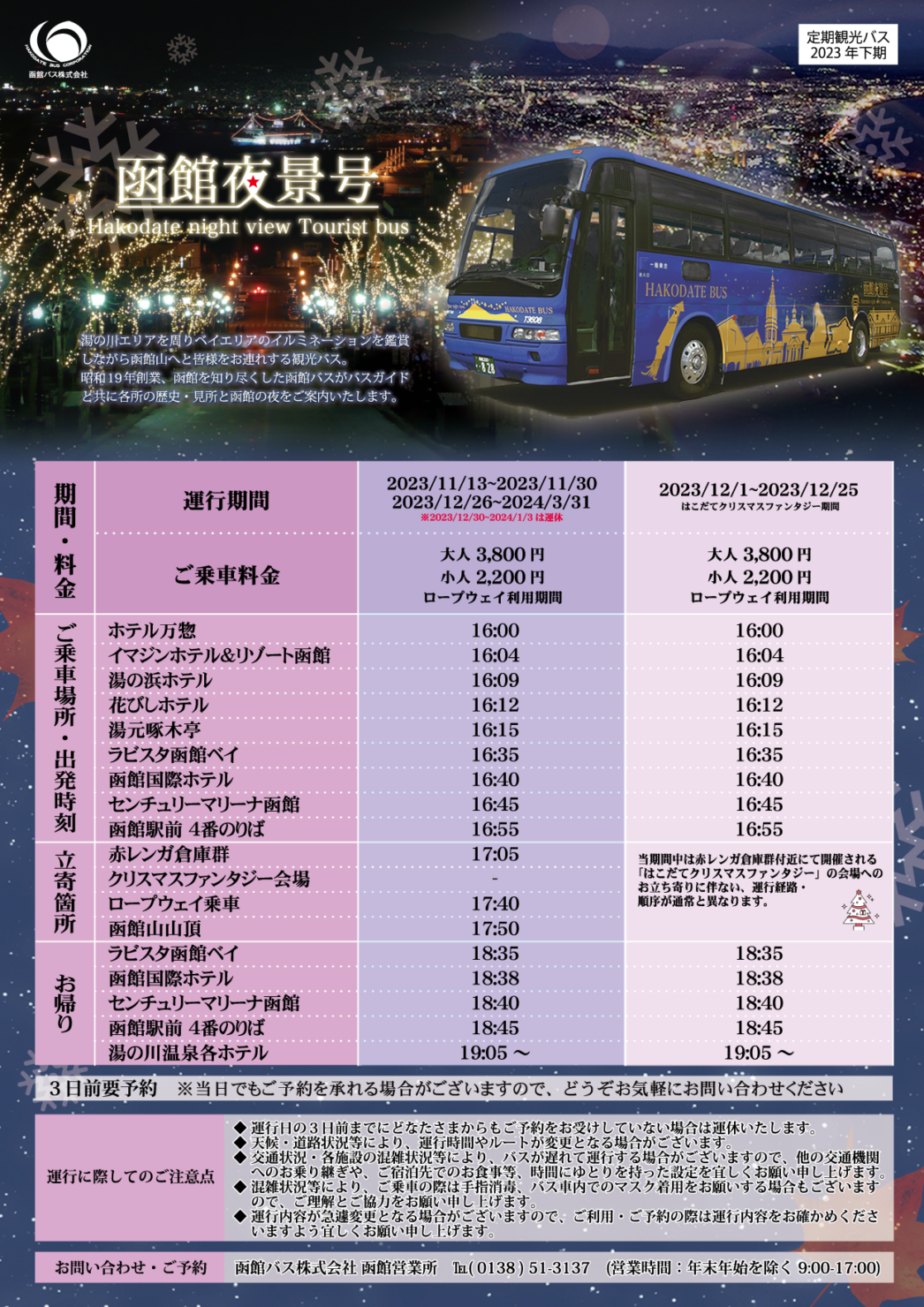このページでは2023年度冬期の函館山山頂までアクセス方法を記載しています。運行状況等に変更が出た場合は随時更新を行っております。