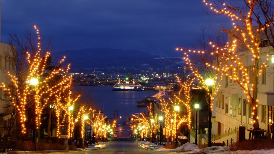 教会や和洋折衷住宅などが点在し異国情緒あふれる街並みを楽しめる元町地区を中心にあたたかい光が街を包み込みます。期間中は毎日点灯。今年の「はこだてイルミネーション」は計3か所で実施。映画、CM等のロケ地としても知られビュースポットでもある「八幡坂」、幅が二十間(約36メートル)もある石畳の道が印象的な「二十間坂」と、二十間坂を下った先のベイエリア~朝市へ続く道である「開港通り」の街路樹。それぞれのスポットごとに異なる景色をお楽しみください!!