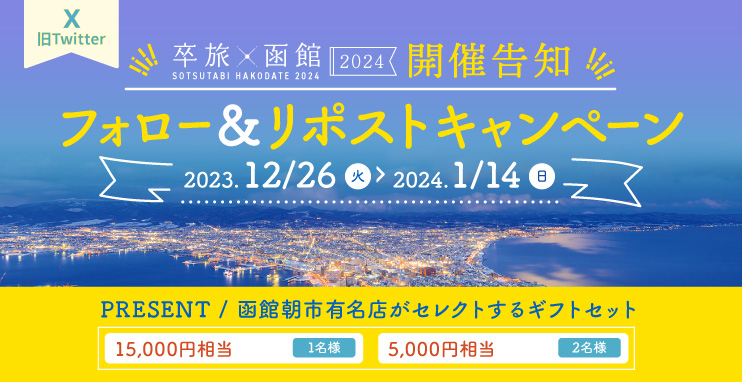 卒旅×函館2024開催告知Xフォロー&リポストキャンペーン(1月2日にて終了)