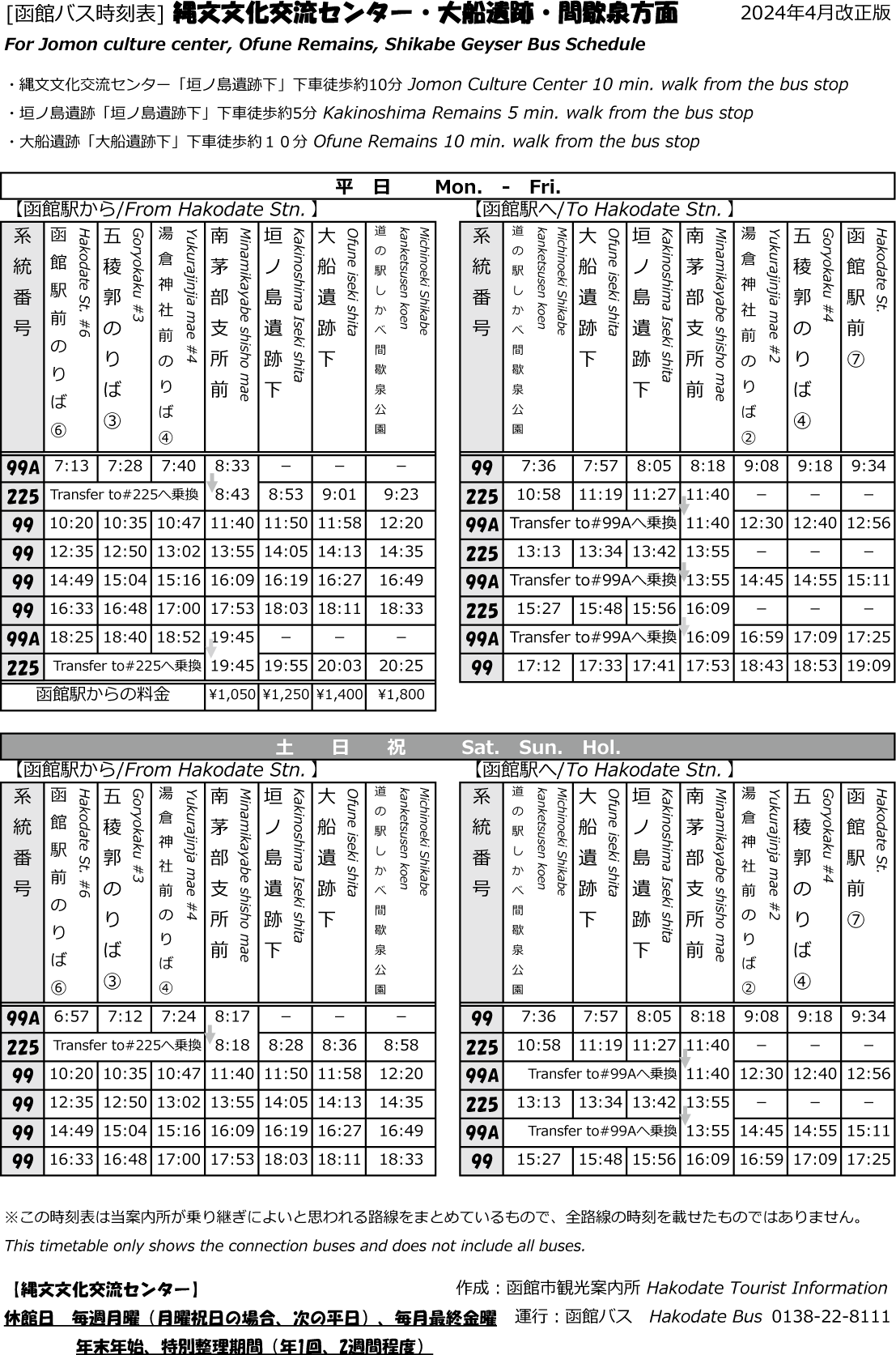 函館市街地から離れた世界遺産「北海道・北東北の縄文遺跡群」や近隣町のしかべ間歇泉公園などへ向かう際に利用できるバスの情報です。
